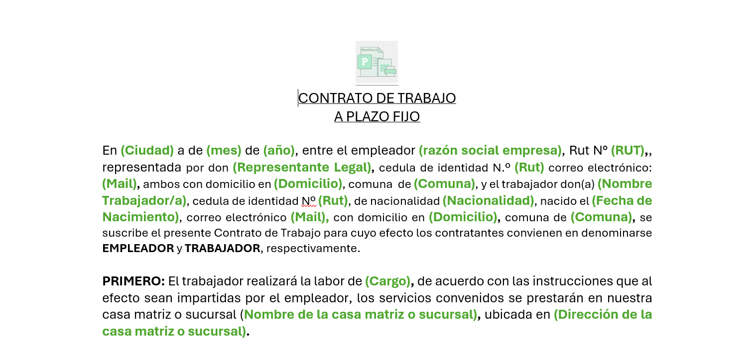 Gestionar contrataciones temporales nunca fue tan fácil. Con nuestra Plantilla de Contrato a Plazo Fijo, tendrás a tu disposición una herramienta completa para formalizar relaciones laborales de manera clara y efectiva, garantizando la tranquilidad tanto para empleadores como para empleados.